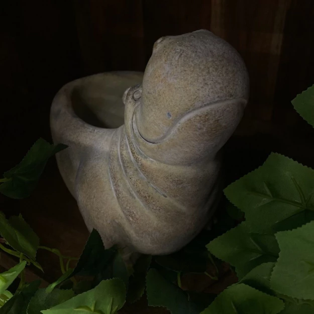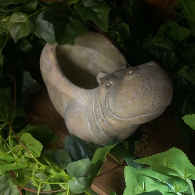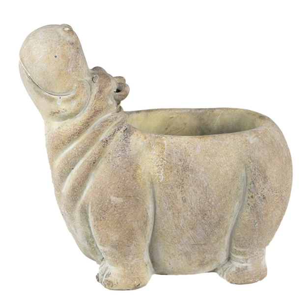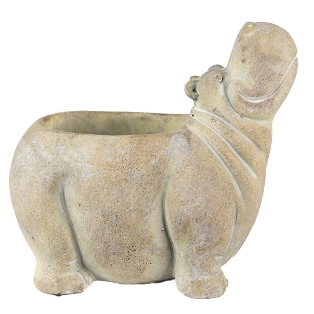 Декоративный вазон бежевый из камня, в форме бегемота от бренда Clayre & Eef. Размер верхнего отверстия 10х9 см.